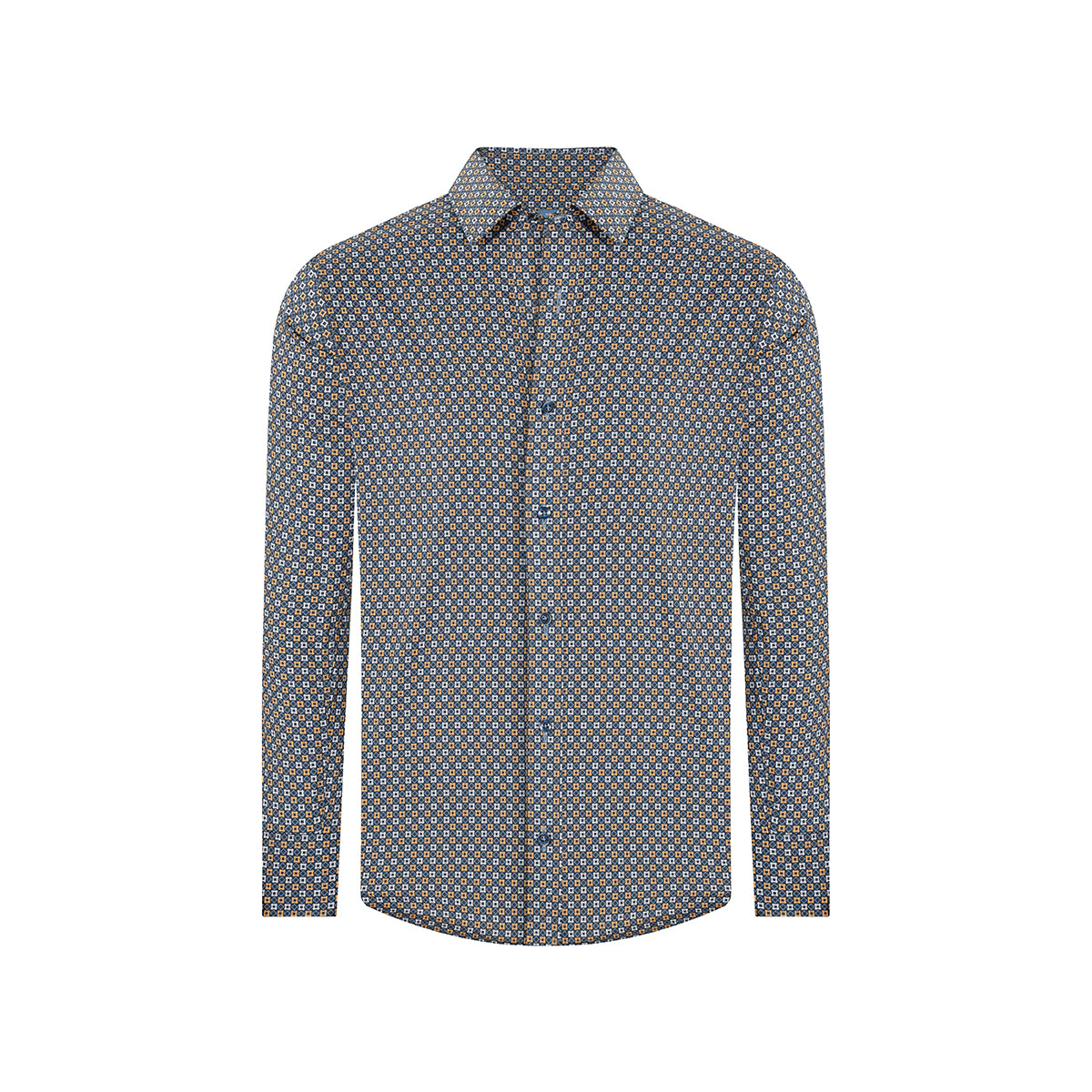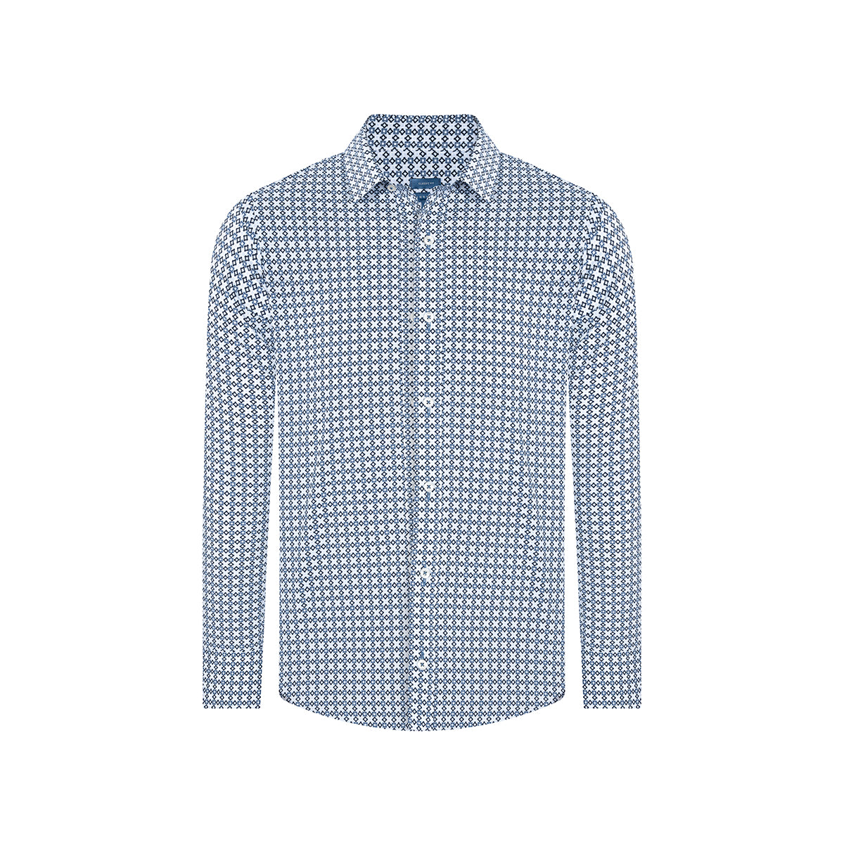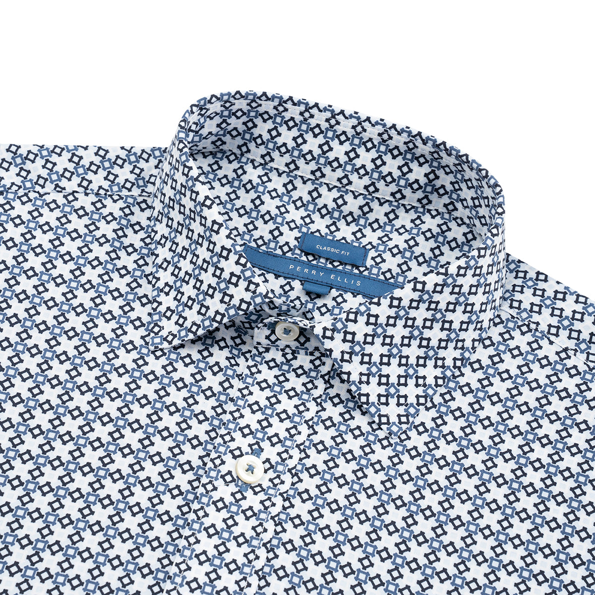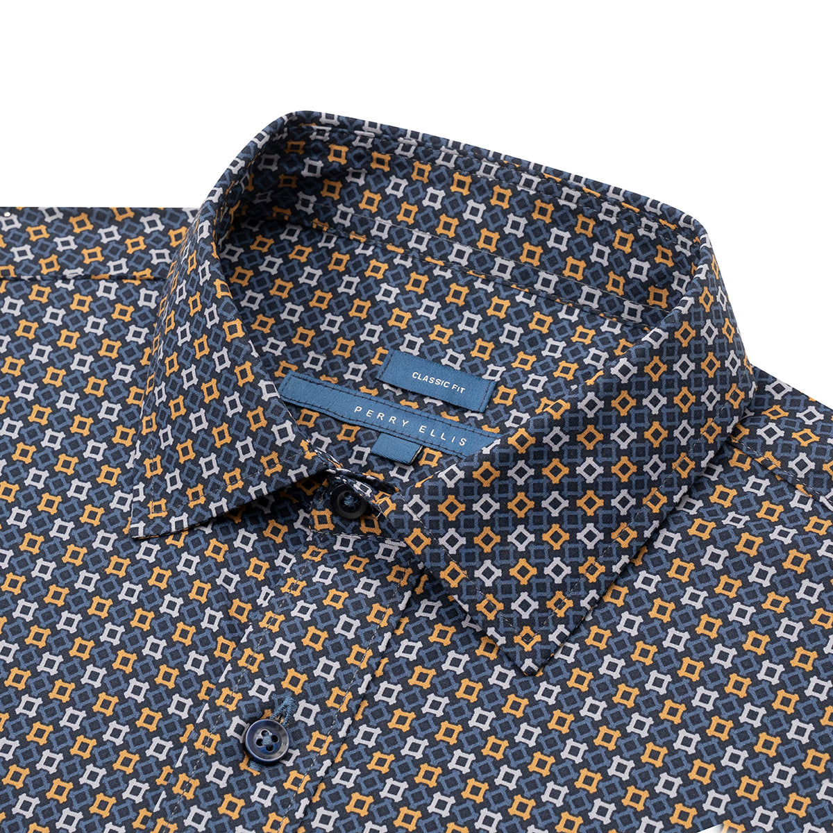 Camisa casual con micro diseño Algodon-Elastano, marca Perry Ellis.